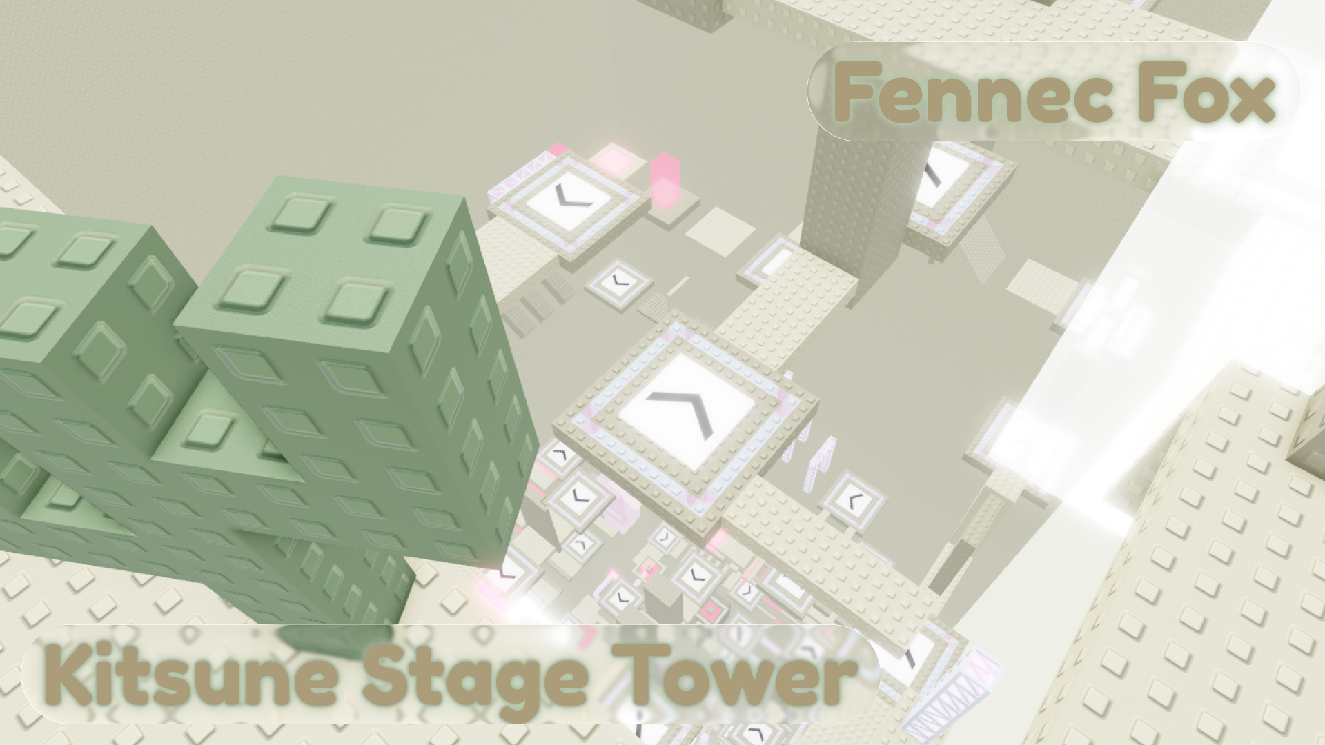 Kitsune Stage Tower is our iconic fox-themed Stage Tower Obby with 300 stages across 3 large towers. The first tower is inspired by the iconinc Japanese folklore of the Kitsune (inari foxes). The second tower is inspired by the red fox, hence, the logs, fences, grass, and other natural elements. The third tower is inspired by the Arctic fox, featuring snowy and icy platforms. The fourth tower is inspired by the Fennec fox, being themed after the desert. Each tower has a unique design and color scheme, with progressively challenging stages, starting easy and becoming medium difficulty by the fourth tower. Overall, the game is listed as easy difficulty, because it only has 3 towers which are, for the most part, easy (despite some challenging aspects in the final tower). There are more details and lore about Kitsune Stage Tower in our blog post.